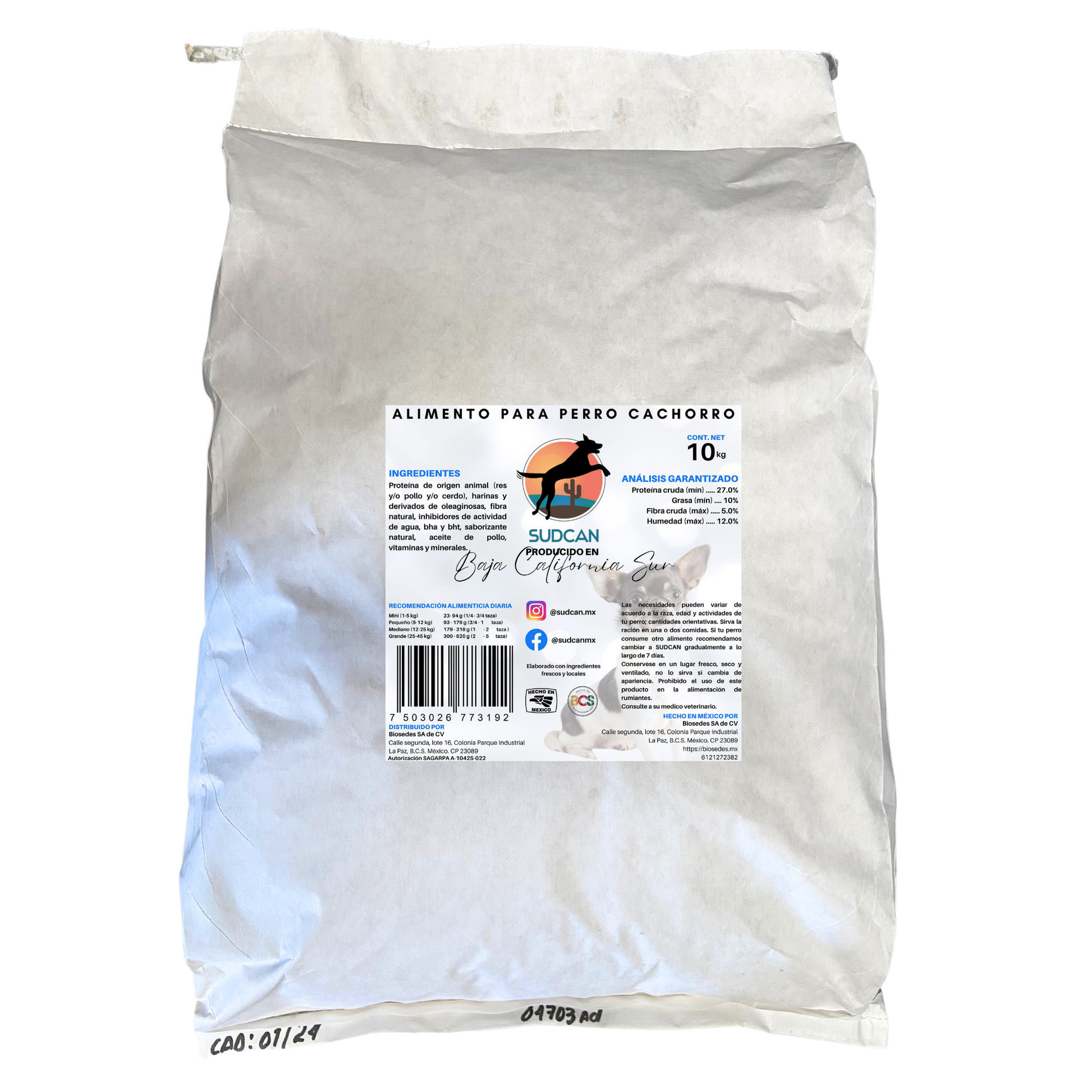 El alimento SUDCAN cachorro fue desarrollado para cumplir las necesidades nutricionales en el crecimiento de tu mascota, recomendamos el primer año y medio con nuestro alimento (o lo que sugiera tu medico veterinario).