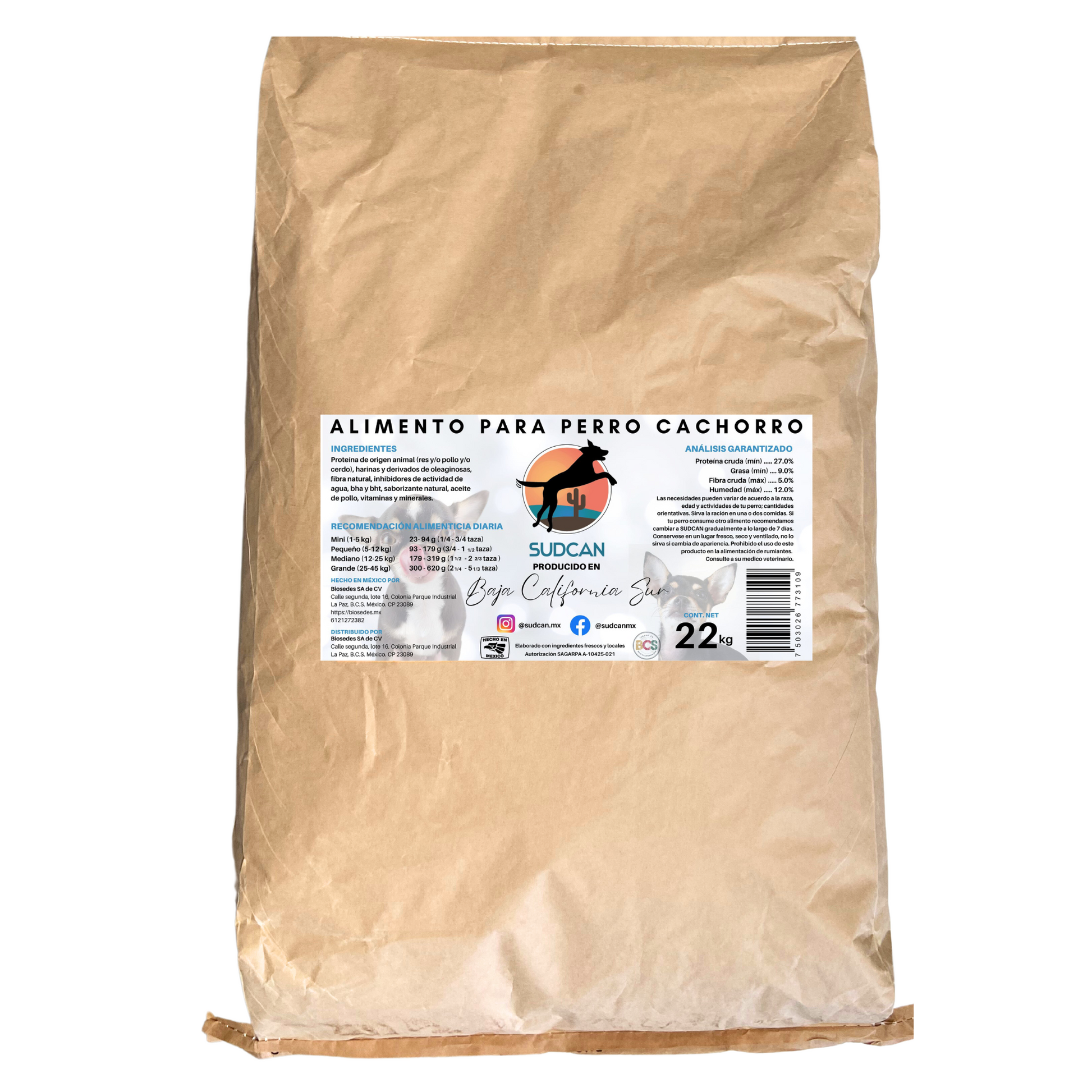 El alimento SUDCAN cachorro fue desarrollado para cumplir las necesidades nutricionales en el crecimiento de tu mascota, recomendamos el primer año y medio con nuestro alimento (o lo que sugiera tu medico veterinario).