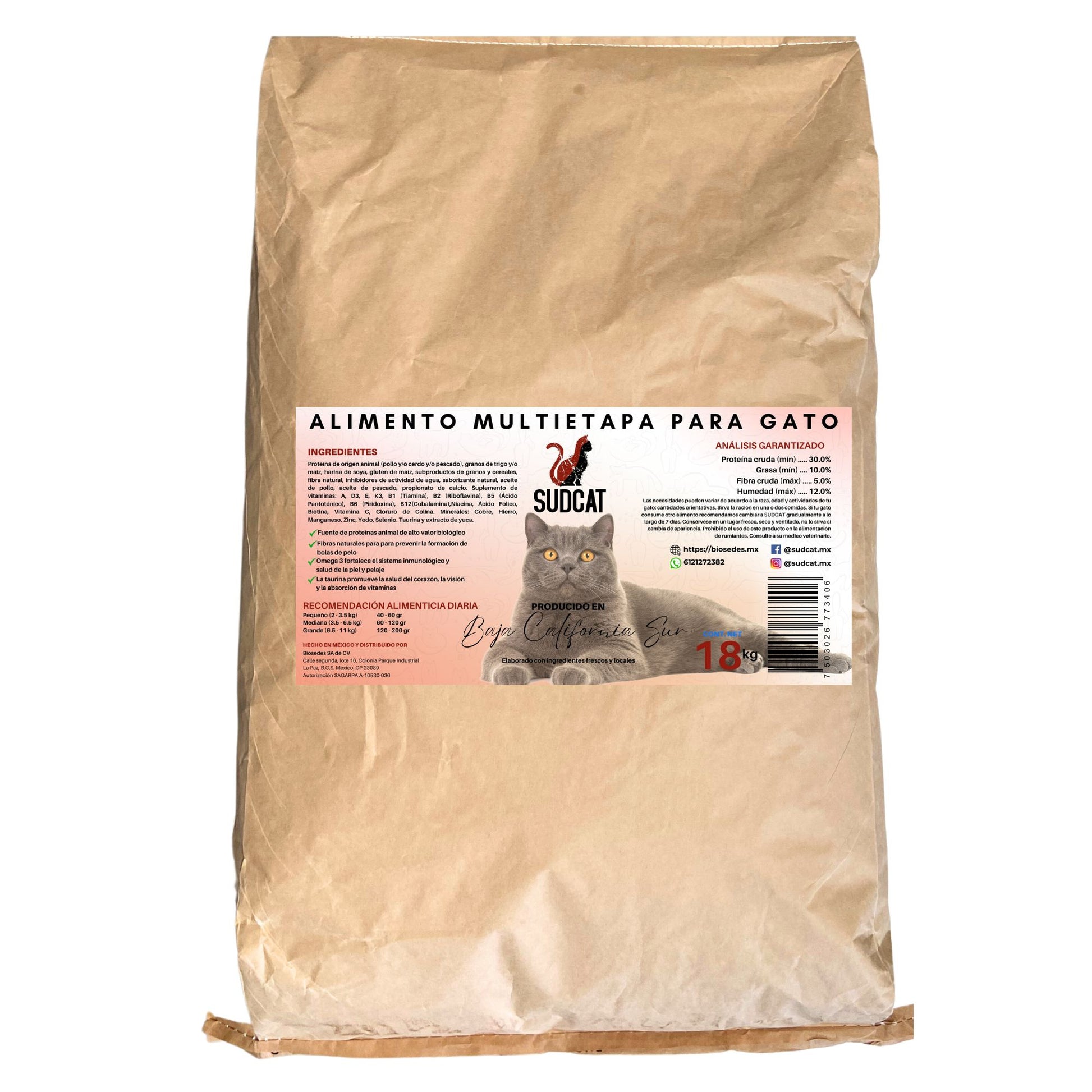 Nuestro alimento multietapa para gatos es la elección perfecta para satisfacer las necesidades nutricionales de tu felino favorito. Con un peso de 18 kg, este producto está diseñado para brindar una nutrición equilibrada y completa a lo largo de todas las etapas de la vida de tu gato, desde sus primeros años de curiosidad hasta su madurez plena.